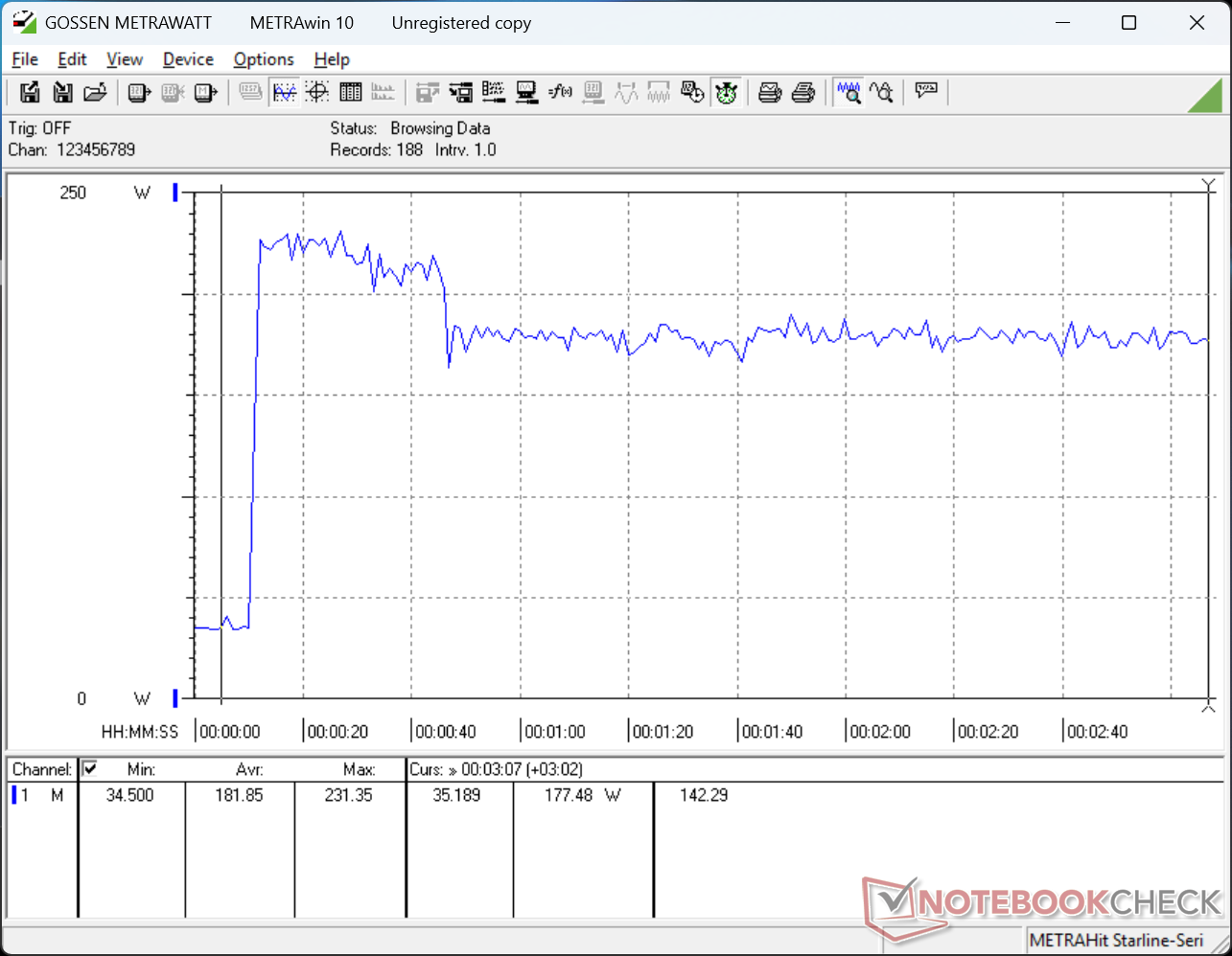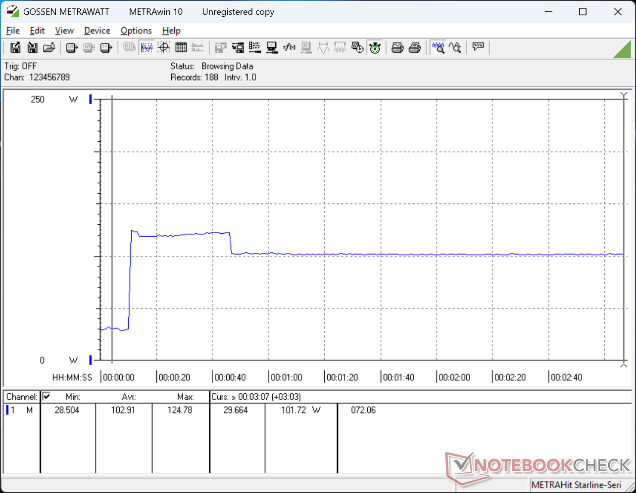El sistema Lenovo es una máquina muy exigente con un alto mínimo de 15 W incluso cuando está en el ajuste de brillo más tenue con Optimus activo hasta 46 W si está en el ajuste más brillante con la dGPU activa. Al ejecutar cargas más altas como juegos, nuestra unidad consumiría tanta energía como el Asus ProArt P16 equipado con la CPU Ryzen AI 9 HX 370 más rápida y la GPU RTX 5070.