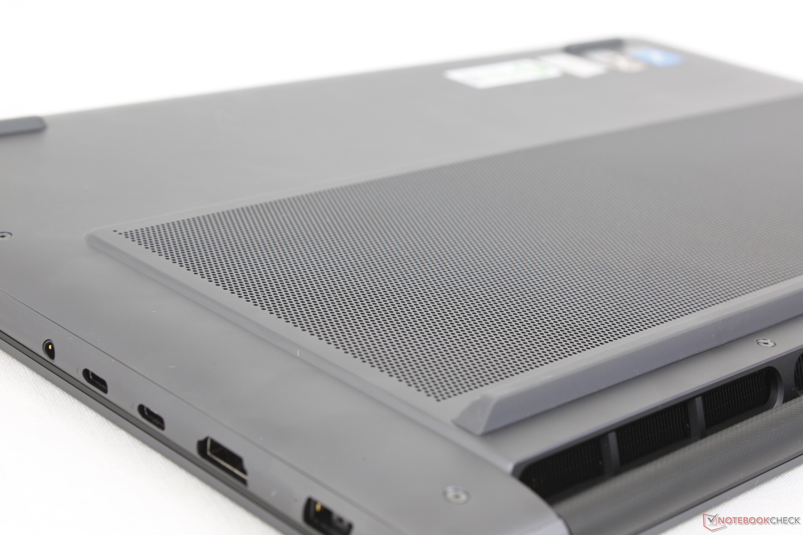 Lenovo ha realizado varios cambios externos con respecto al diseño del año pasado. El más notable es la eliminación del teclado numérico en favor de unas rejillas de ventilación más grandes a lo largo de los laterales del teclado. Además, la cubierta inferior D ya no es completamente plana, ya que las rejillas de ventilación están ahora ligeramente elevadas. La etiqueta "Yoga" grabada con láser que era tan prominente en el modelo del año pasado también se ha eliminado ya que Lenovo quiere enfatizar en su lugar la denominación "Pro".