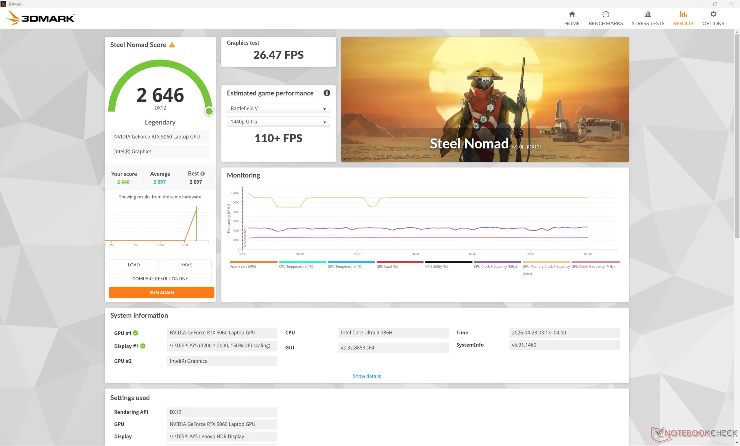 | Cyberpunk 2077 Estrés (modo Rendimiento) | 1.7 | 2647 | 82 | 75 |