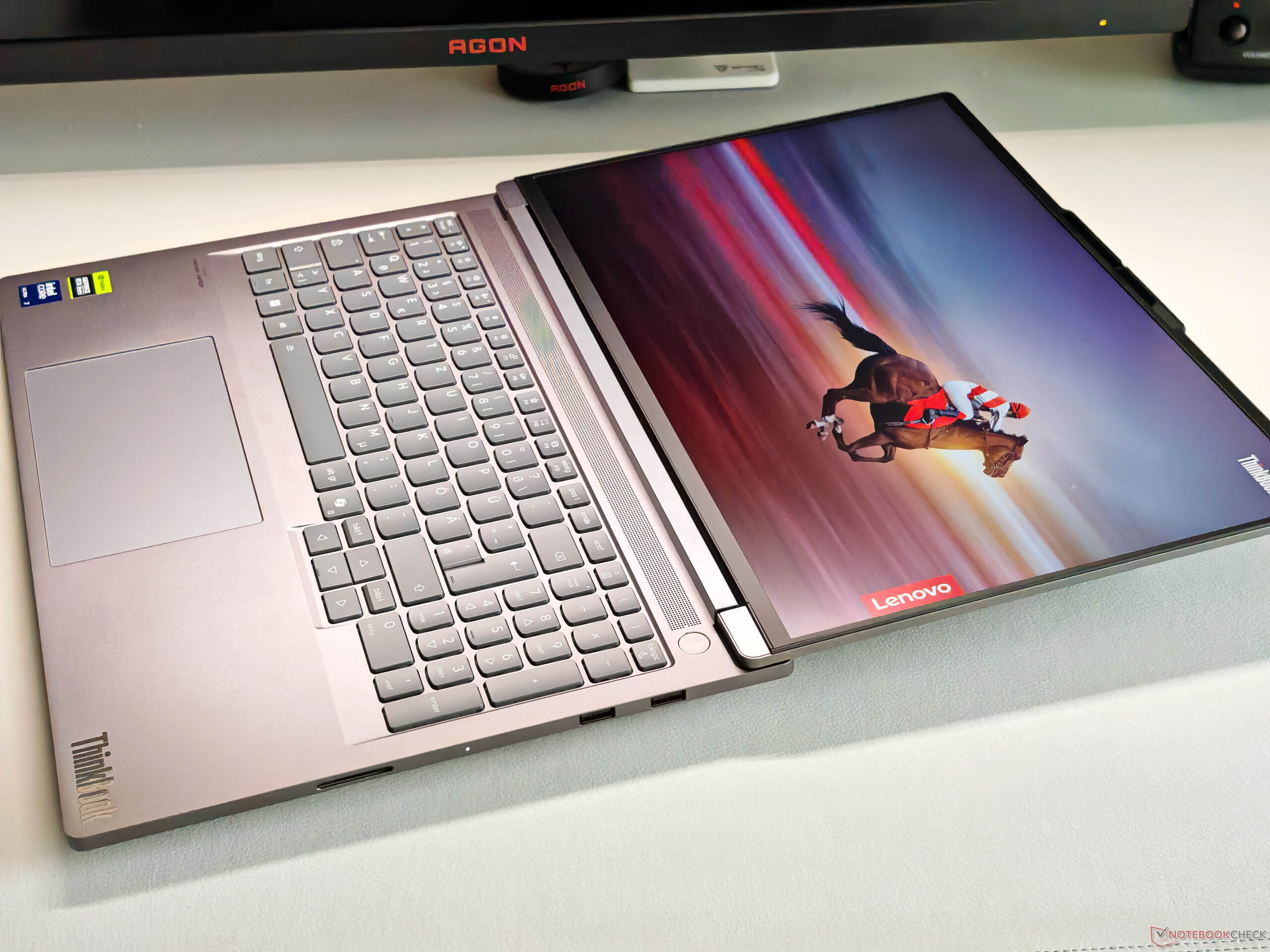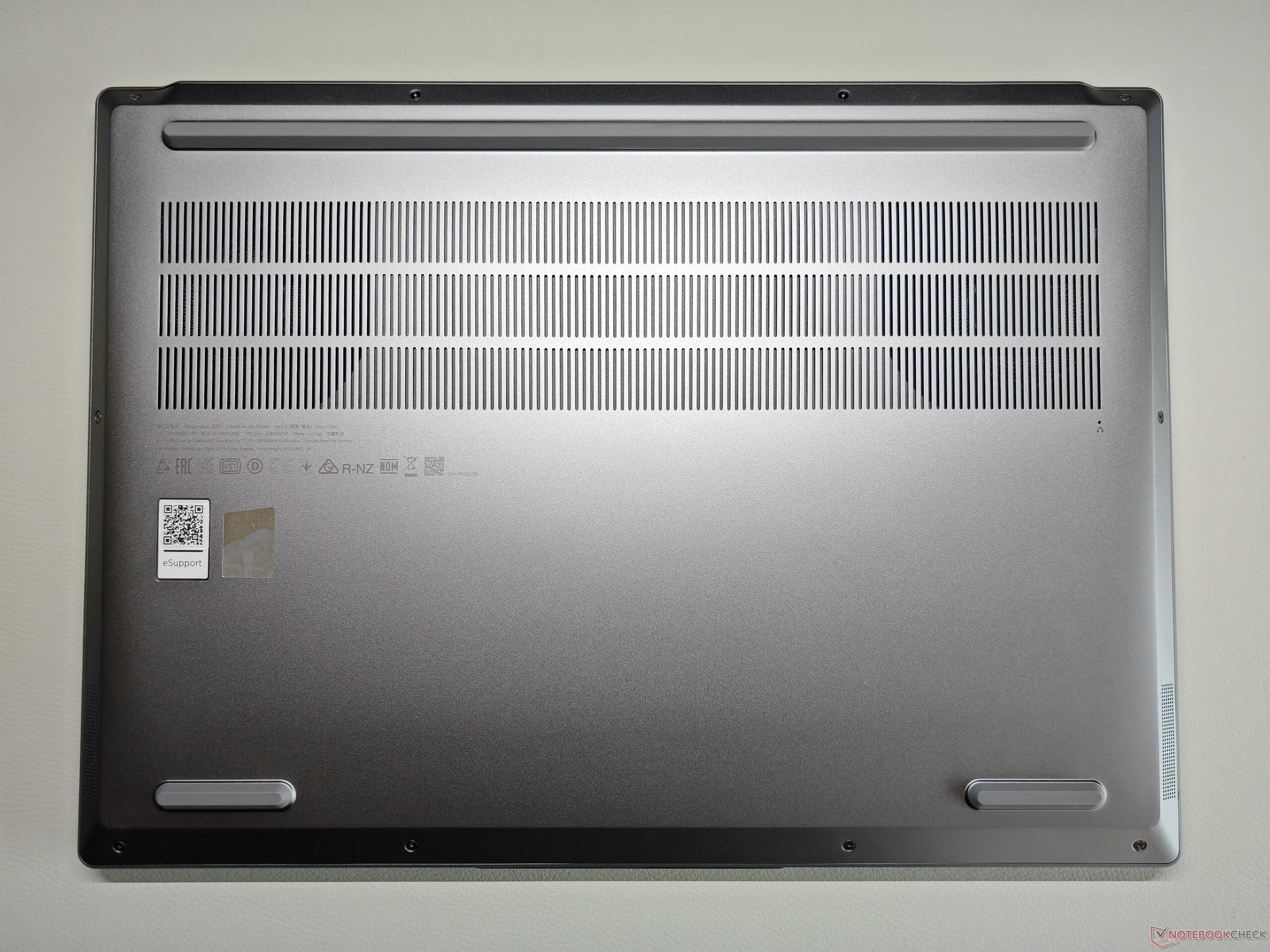 La duración de la batería era un punto débil del predecesor, pero el modelo actual con el panel WQHD rinde mucho mejor aquí. En la prueba WLAN a 150 cd/m², ahora determinamos 10,5 horas y aún 7 horas a brillo máximo, lo que hace que el ThinkBook sea muy competitivo en general.