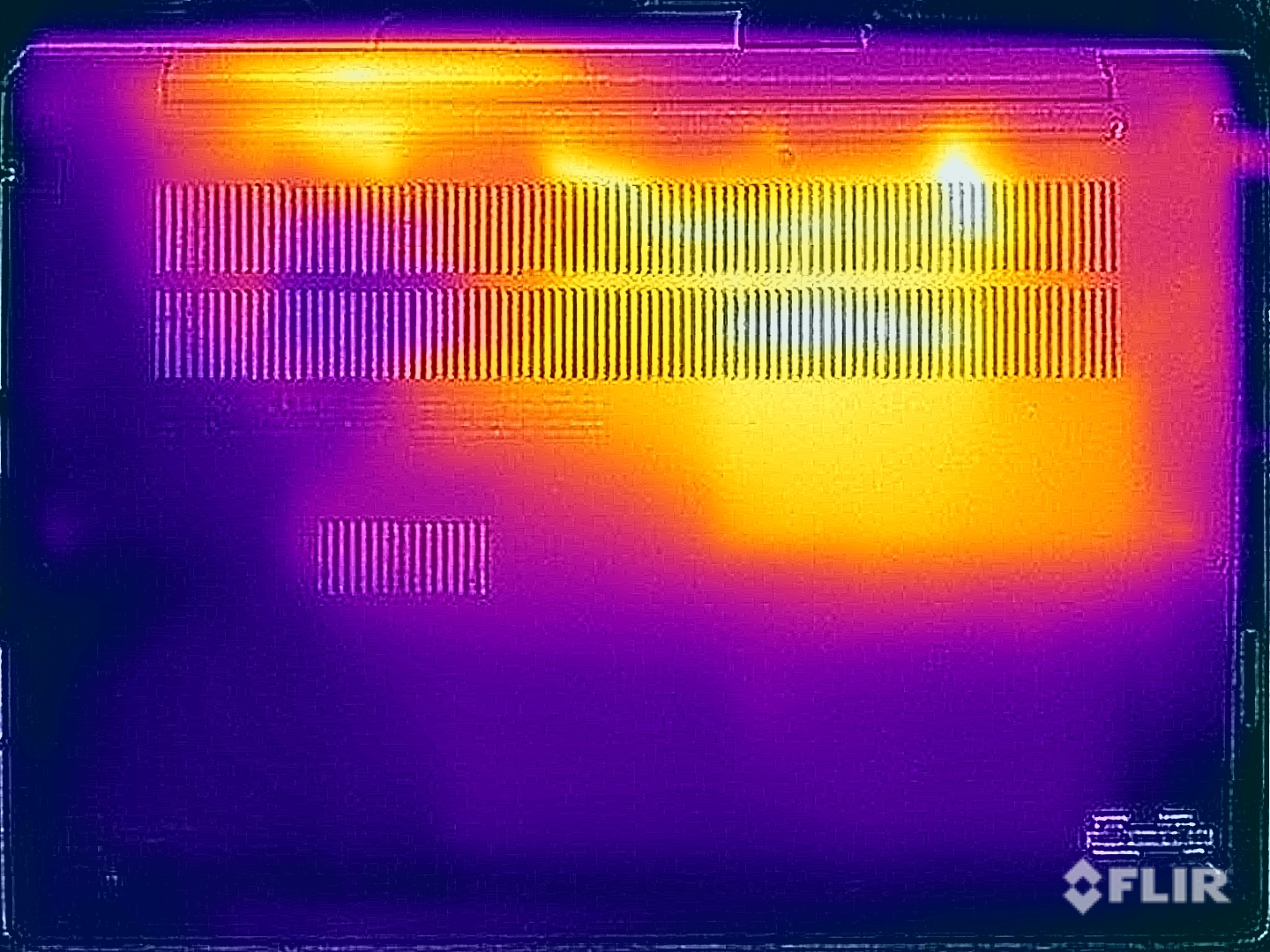 (-) La temperatura máxima en la parte superior es de 46.1 °C / 115 F, frente a la media de 34.3 °C / 94 F, que oscila entre 21.2 y 62.5 °C para la clase Office.