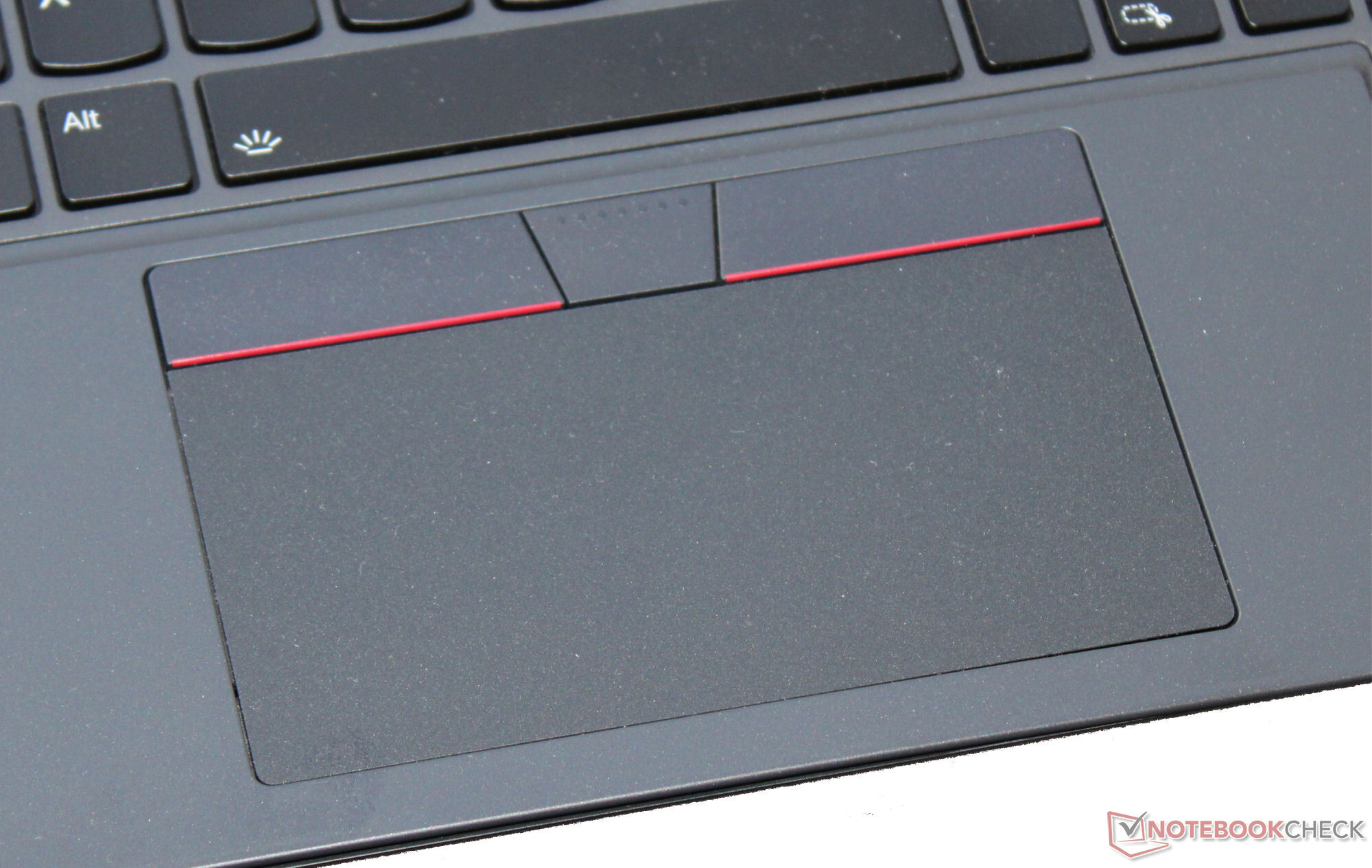 Una almohadilla de clic, que mide aproximadamente 4,52 x 2,20 pulgadas, sirve como sustituto principal del ratón con un recorrido corto y un punto de presión claro. El trackpoint, también disponible, permite un control más preciso del puntero del ratón. Los tres botones de ratón de recorrido suave que la acompañan proporcionan un punto de presión claro.