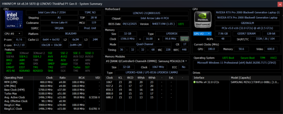 | Lenovo ThinkPad P1 Gen 8 Intel Core Ultra 7 255H ⎘ NVIDIA RTX PRO 2000 Blackwell Generation Laptop ⎘ 32 GB Memoría, 1024 GB SSD | Precio de catálogo: 2000 USD | 1.9 kg | 20.6 mm | 16.00" 3200x2000 236 PPI Tandem OLED | |