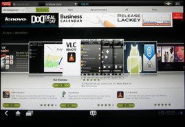 En la tablet Lenovo hay dos enlaces a App Store instalados a la vez. Uno es para acceder al Android Market, y la otra para acceder a la Lenovo Shop. En el Android Market, puedes encontrar todo relacionado con todo tipo de dispositivos Android - herramientas, juegos, aplicaciones (útiles e inútiles) etc. Y la selección en la Lenovo App Store no es diferente: tienes casi el mismo rango de productos aquí, pero pagas a Lenovo en lugar de a Google.