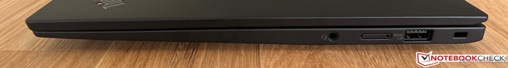 En cuanto a los puertos, sigue habiendo una buena selección, incluyendo Thunderbolt 4, pero, una vez más, falta un lector de tarjetas SD. Nuestro dispositivo de pruebas está equipado con un módulo LTE que incluye una ranura Nano SIM que incluso puede actualizarse opcionalmente a un módulo 5G. El módulo Wi-Fi de Intel (AX211) cumple los estándares actuales y las tasas de transferencia en nuestro test Wi-Fi fueron muy buenas.