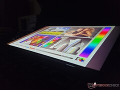 Nuestra unidad de prueba Gen 2 utiliza un panel IPS diferente al de la versión Gen 1 original (P101ZFZ-BH2 frente a MND007ZA1-2). No obstante, sus atributos principales siguen siendo casi idénticos para una experiencia visual esencialmente igual. Los usuarios siguen obteniendo un panel de 450 nits con cobertura sRGB completa y una relación de contraste de >1000:1. Los tiempos de respuesta en blanco y negro y gris podrían ser mejores, pero esto no es un problema para la navegación o las cargas de trabajo de tipo ofimático.