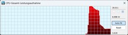 Las mediciones muestran que el sistema puede consumir hasta 50 W, sobre todo en aplicaciones con mucha CPU. Sin embargo, este valor no se mantiene y pronto desciende a entre 20 y 25 W. Por cierto, este último es también el consumo de energía de las aplicaciones que consumen mucha GPU, como los juegos.