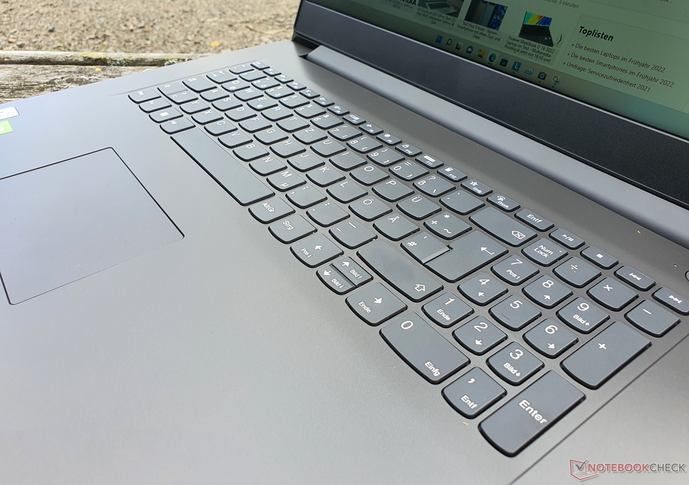 Lenovo también incluye un buen teclado resistente a las salpicaduras en el V17. Las teclas ofrecen un recorrido corto, un punto de presión claro y una resistencia media. Aunque puedes usarlo para escribir textos rápidamente, no será necesariamente silencioso. La mayoría de las teclas tienen el tamaño completo, pero unas pocas son más pequeñas y algunas sólo están disponibles como funciones secundarias en teclas compartidas. No hay iluminación en el teclado