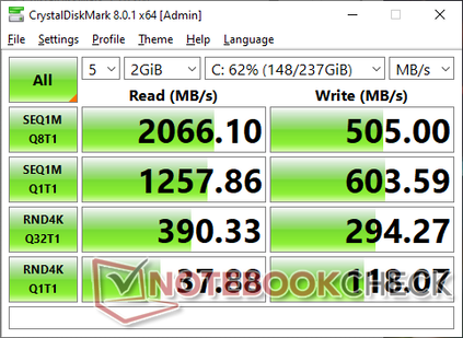 El uso de la batería reduce ligeramente el rendimiento. Una prueba 3DMark 11 en baterías devolvería puntuaciones de Física y Gráficos de 9921 y 5050 puntos, respectivamente, comparado con 9793 y 5220 puntos cuando está conectado a la red.