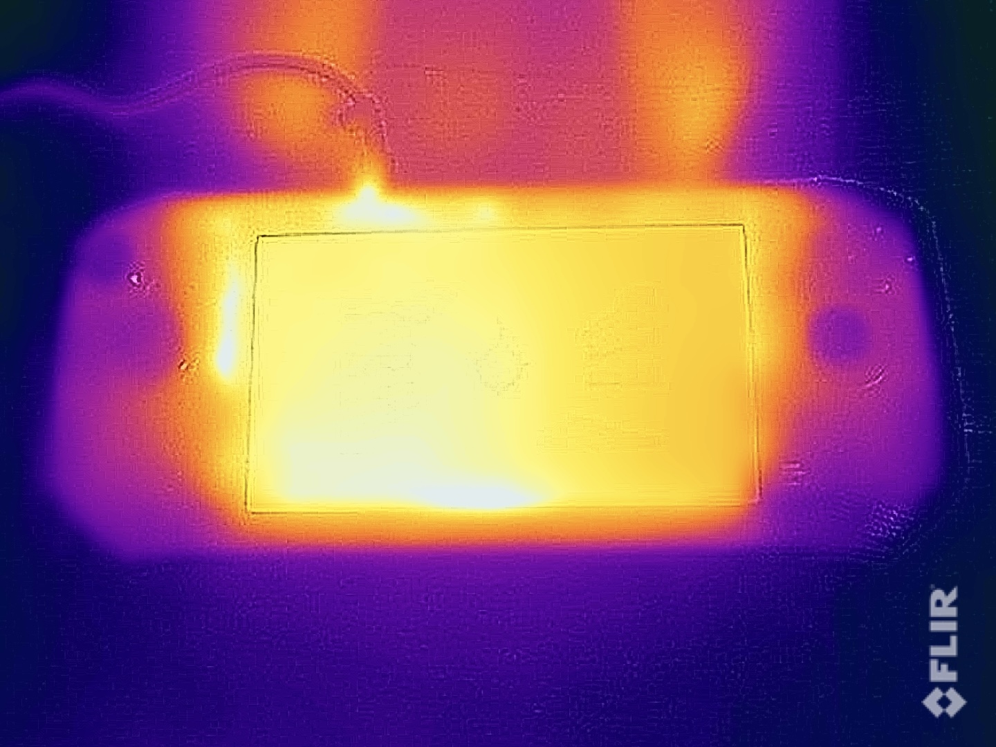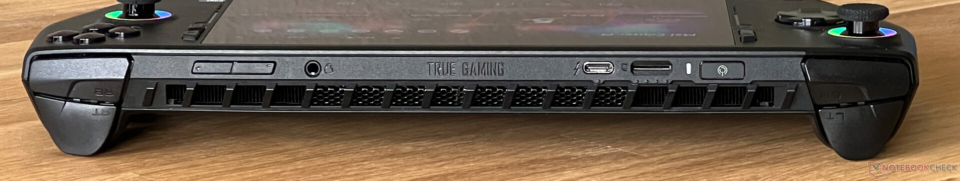 Los dos altavoces estéreo de la parte frontal hacen un trabajo bastante bueno y llegan a ser muy ruidosos. Sin embargo, sigue siendo difícil bloquear el ruido constante del ventilador cuando se juega. El sonido es claro pero le falta algo de pegada, lo que también ocurre con los otros dispositivos portátiles. El ROG Ally está a un nivel comparable, pero el Valve's Steam Deck OLED de Valve rinde ligeramente mejor.