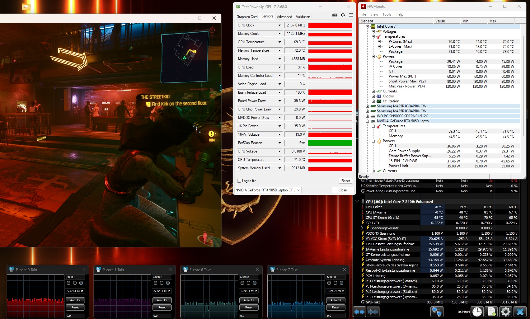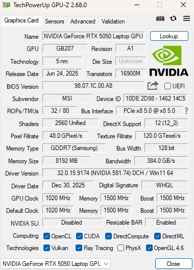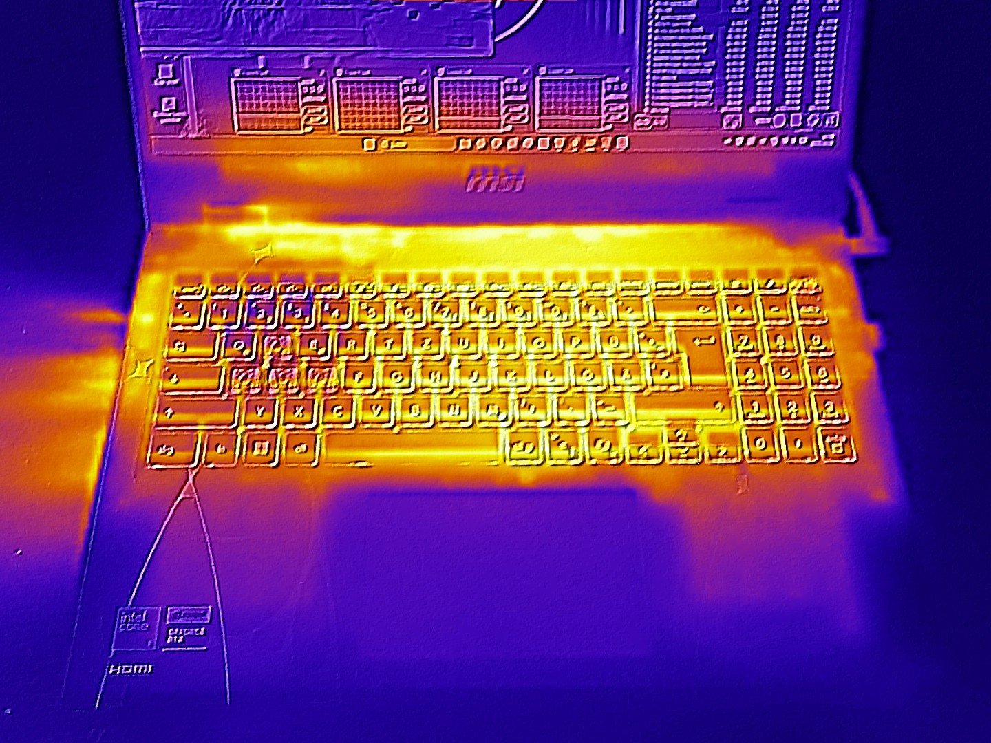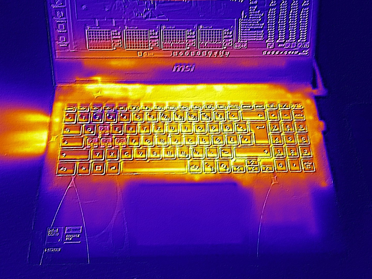 La potencia de la tarjeta gráfica también es digna de discusión: Como MSI sólo dota a la RTX 5050 de unos escasos 45 vatios TGP, el rendimiento de la GPU se queda por debajo de su potencial, como mostraremos en el transcurso del artículo, aunque el desarrollo del ruido es limitado. El resto del equipo es sólido, pero no fastuoso para el precio, con un Core 7 240H, 16 GB de RAM DDR5 (2x 8 GB) y un SSD de 512 GB. Mientras tanto, hay puntos a favor para el obturador de privacidad de la webcam, que no es algo habitual en los portátiles para juegos en particular.