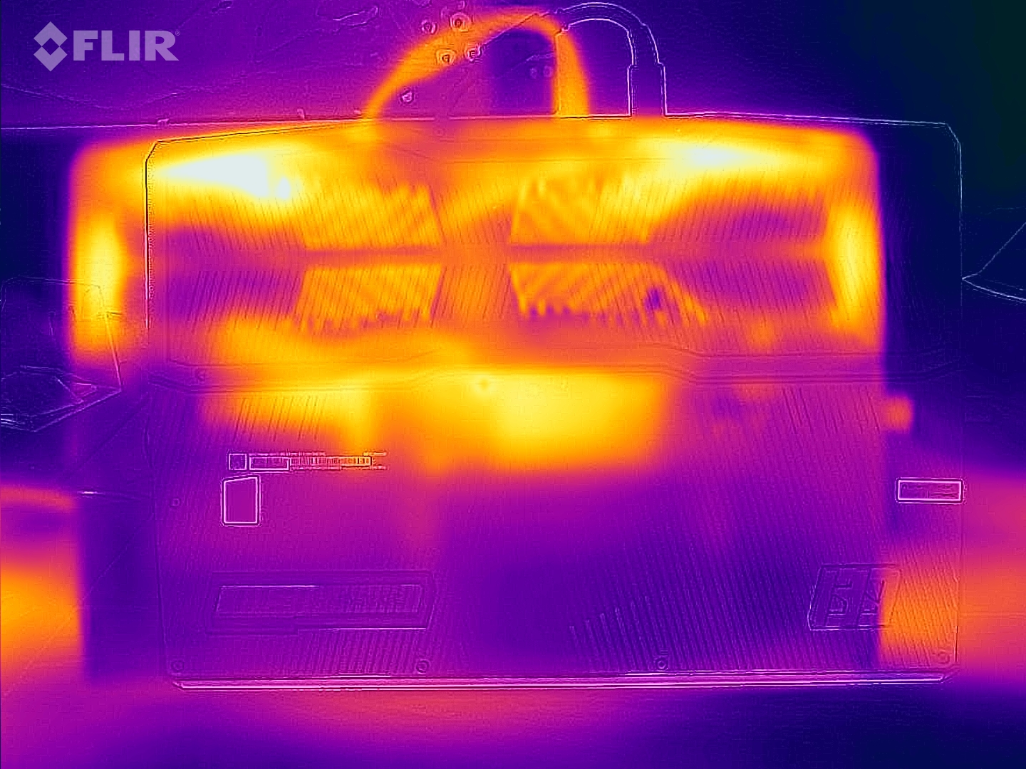 (-) La temperatura máxima en la parte superior es de 53 °C / 127 F, frente a la media de 40.4 °C / 105 F, que oscila entre 21.2 y 68.8 °C para la clase Gaming.