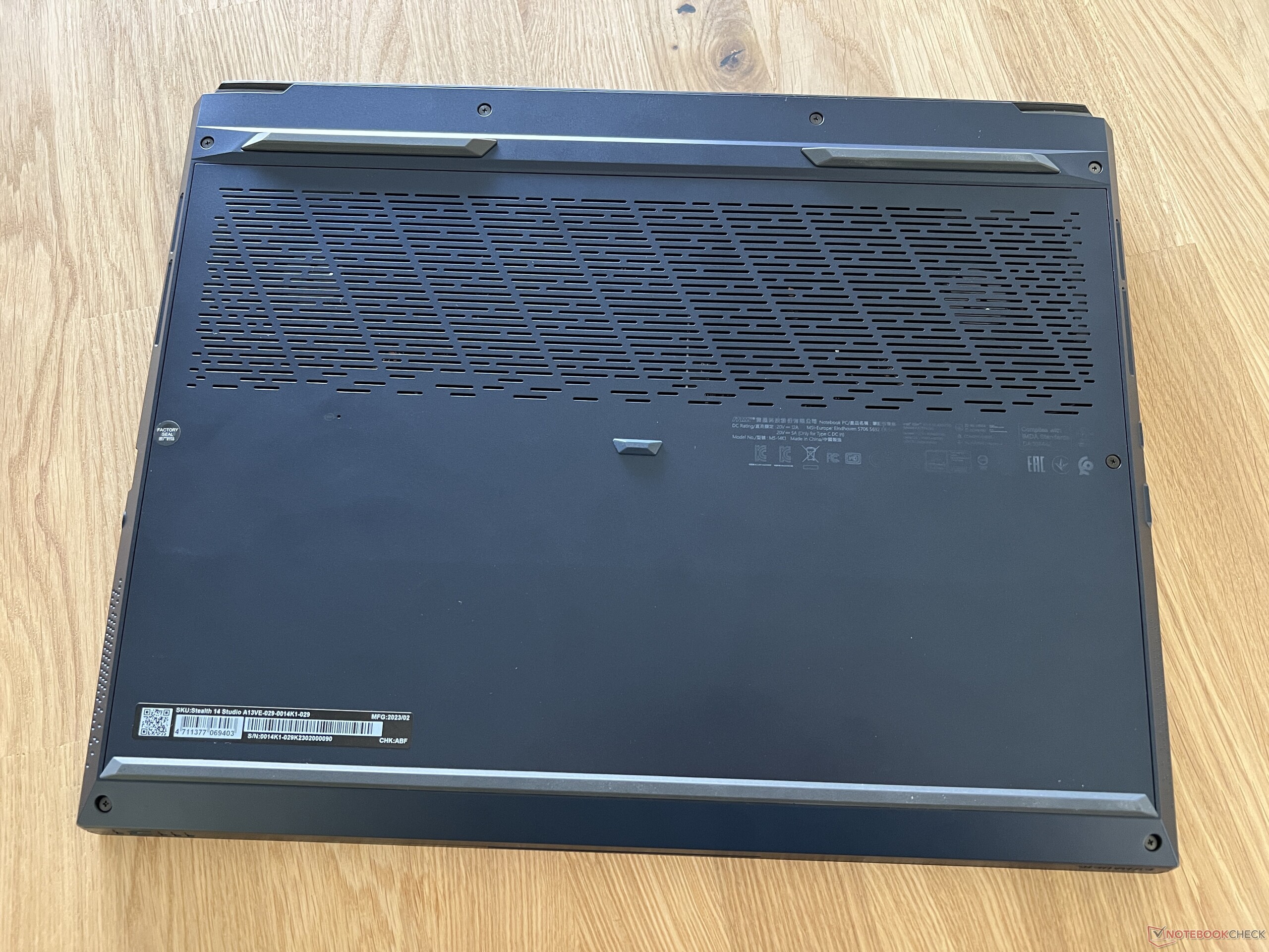 Ya hemos notado que el Stealth 14 Studio se calienta bastante en reposo, especialmente la parte inferior del dispositivo. Durante las tareas diarias simples, aún puedes cómodamente sentar el portátil sobre tus muslos. Tan pronto como el dispositivo se coloca bajo grandes cantidades de carga o cuando empiezas a jugar, entonces probablemente deberías evitar hacer esto, ya que rápidamente empezará a ser incómodo. Medimos más de 55 °C en la parte inferior del dispositivo. Incluso el teclado se calentó y alcanzó los 45 °C, lo que definitivamente se nota al jugar y tras un largo periodo de tiempo, empieza a ser un poco incómodo.