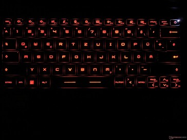 La carcasa del portátil también nos causó una impresión mixta - en comparación con su unidad base extremadamente estable, la tapa de la pantalla puede retorcerse bastante y hay que tener mucho cuidado para no causar daños permanentes. También tenemos algunos aspectos negativos que señalar sobre su teclado. Mientras que la iluminación individual de las teclas es agradable (a pesar de que el software para controlar esto es cualquier cosa menos intuitivo), la elevación de las teclas es muy superficial y, en general, tiene una sensación bastante raquítica.