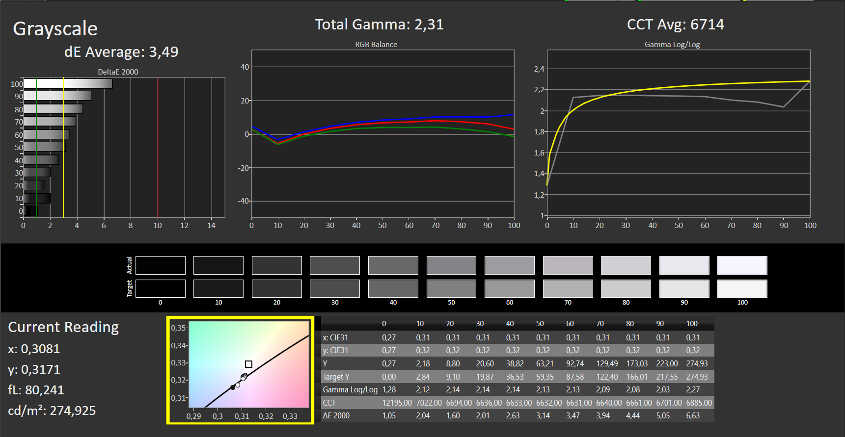 ΔE Greyscale Calman: 3.49 | ∀{0.09-98 Ø5}