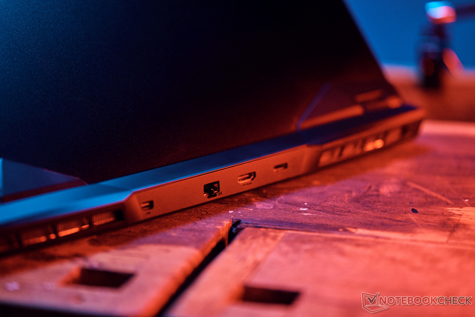 Afortunadamente, algunos de los puertos están situados en la parte trasera del dispositivo para que los cables correspondientes no sean visibles. Un mini DisplayPort con Adaptive Sync está presente, junto con una salida HDMI (4K @120Hz), LAN de 2.5 GBit y el conector de alimentación propietario.