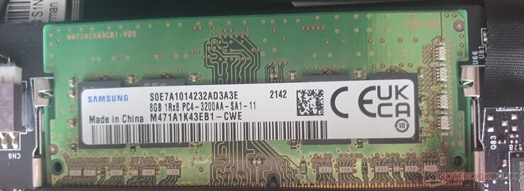 En el lado izquierdo hay un cierre Kensington, 1x USB-A 3.2 Gen1 (5 GBit/s), 1x USB-C 3.2 Gen2 (10 GBit/s) con funcionalidad DisplayPort. Sin embargo, faltan Power Delivery y Thunderbolt. Por tanto, no se puede garantizar el juego móvil en ausencia de una fuente de alimentación de 800 gramos. Tampoco se puede usar una tarjeta gráfica externa más potente.