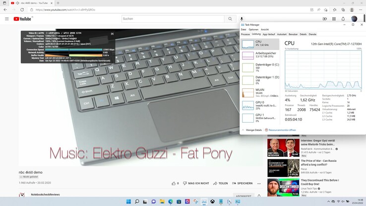 El procesador comenzó con 131 vatios, pero se redujo rápidamente a 50 vatios, lo que mantuvo las temperaturas del núcleo muy bajas. Las temperaturas de la GPU Nvidia también pueden describirse como muy discretas, aunque sigue consumiendo más de 140 vatios. Bajo estrés puro de la CPU, se permite un consumo constante de 70 vatios (modo extremo) y se mantiene bastante fresca a 76°C.