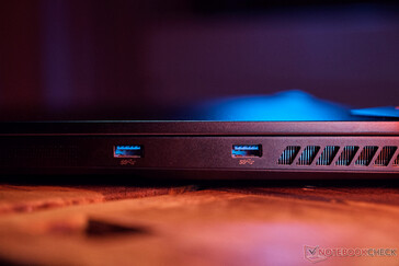 Por lo demás, hay una conexión jack y otros dos puertos USB A 3.2 Gen1 en el lado derecho del portátil. No hay lector de tarjetas SD ni lector de huellas digitales. Con un disco duro externo, logramos tasas de transferencia de alrededor de 1 GB/s en el puerto más rápido (USB-C a 10GBIt/s), lo que aproximadamente lleva al límite el puerto. El SSD externo (USB 3.2 Gen 2x2) logra el doble de velocidad de transferencia en un puerto Thunderbolt.