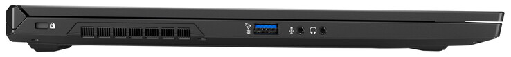 Mientras que la ranura USB-C del Erazer Beast X10soporta Thunderbolt 3, la ranura correspondiente del X20 "solo" funciona con el estándar USB 3.2 Gen 2. Este último ofrece DisplayPort a través de USB-C. Así, el portátil tiene dos salidas de vídeo junto con la ranura HDMI 2.1, trespuertosUSB-A(2x USB 3.1 Gen 1, 1x USB 3.2 Gen 2), dos tomas de audio(salida deauriculares, entrada de micrófono), una ranura Gigabit Ethernet, y una abertura para un bloqueo de cable.