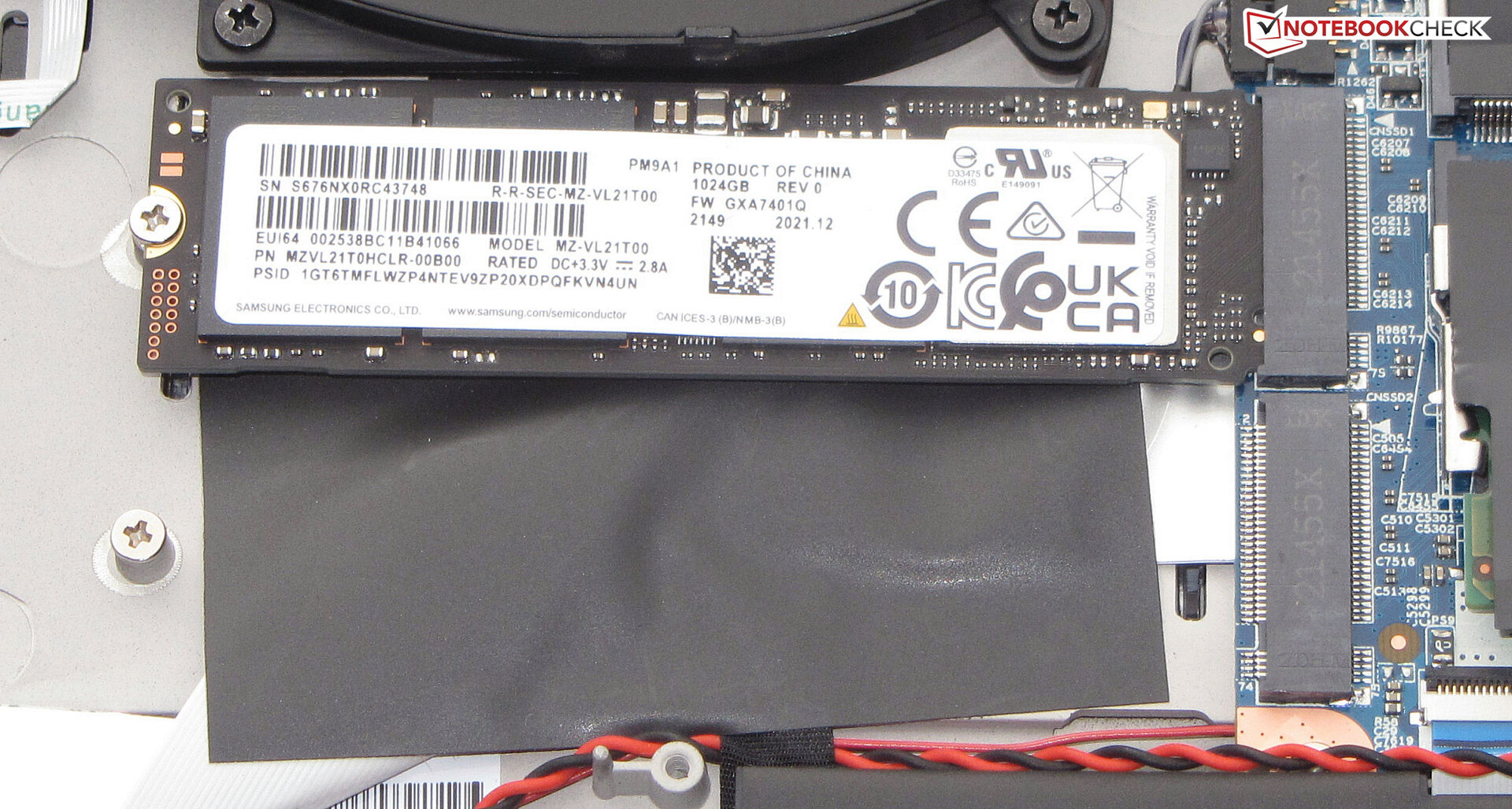 Después de retirar todos los tornillos de la parte inferior del portátil, la carcasa inferior se puede retirar con bastante facilidad. Es posible que se necesite una espátula plana para retirar la carcasa inferior. Entonces tienes acceso a los bancos de memoria principal (ambos ocupados), el SSD (PCIe 4), la segunda ranura M.2-2280 (PCIe 4), el módulo WLAN, los ventiladores, la batería de la BIOS y la batería del portátil.