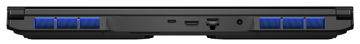 El Erazer tiene tres puertos USB-A (1x USB 3.2 Gen 1, 2x USB 3.2 Gen 2) y un puerto USB-C (Thunderbolt 4). Este último emite una señal DisplayPort, pero no ofrece soporte Power Delivery. El Major X20 también cuenta con un total de dos salidas de vídeo (HDMI 2.1, DP). Otras conexiones incluyen una ranura para un bloqueo de cable, dos tomas de audio y un puerto Gigabit Ethernet (2,5 Gbps)