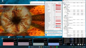 La prueba de estrés (con Prime95 y Furmark ejecutándose constantemente) representa un escenario extremo que utilizamos para evaluar la estabilidad del sistema a plena carga. La CPU comienza la prueba con velocidades de reloj medias-altas (P: 3,4 a 3,7 GHz, E: 2,8 a 2,9 GHz), y la GPU funciona a 2,3 GHz. A medida que avanza la prueba, las velocidades de reloj de la CPU y la GPU disminuyen.