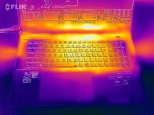 El portátil se calienta moderadamente como mucho. La temperatura más alta se alcanza durante la prueba de estrés, con 41 °C en un único punto de medición. En el funcionamiento diario, las temperaturas se mantienen dentro del rango verde.