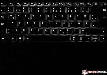 Los dispositivos de entrada también se han adoptado del modelo anterior. En general, el teclado se siente bien al escribir, pero sus grandes teclas aún tienden a traquetear un poco. Se pueden escribir textos largos, pero hay teclados claramente mejores en el mercado. La retroiluminación blanca del teclado tiene tres niveles de ajuste.