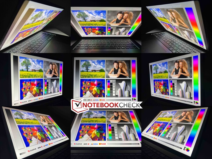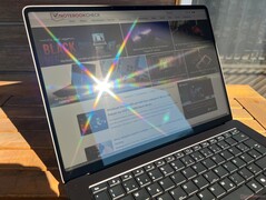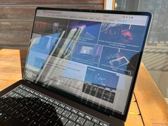 En general, la pantalla táctil IPS del portátil ofrece una buena calidad de imagen con colores vibrantes, una frecuencia de 120 Hz y una relación de aspecto 3:2, lo que resulta especialmente útil para las actividades productivas. Además, la imagen no aparece granulada ni siquiera cuando se representan contenidos brillantes. A diferencia de las pantallas OLED, tampoco hay parpadeo PWM. Además, su brillo es estupendo con algo menos de 600 cd/m², pero su nivel de negro es ligeramente superior, lo que nos lleva a sus desventajas en comparación con los paneles OLED. Tanto el nivel de negro como el contraste son simplemente más débiles en los paneles IPS. La resolución del panel (2.496 x 1.664 píxeles) está bien y sus tiempos de respuesta no son destacables, pero sigue habiendo algo de sangrado de retroiluminación. Tanto su brillo como su temperatura de color pueden regularse automáticamente mediante un sensor. Los halos no son un problema a pesar de su alto brillo. Es compatible con contenidos HDR, pero el brillo máximo de la pantalla permanece inalterado en ~600 cd/m²