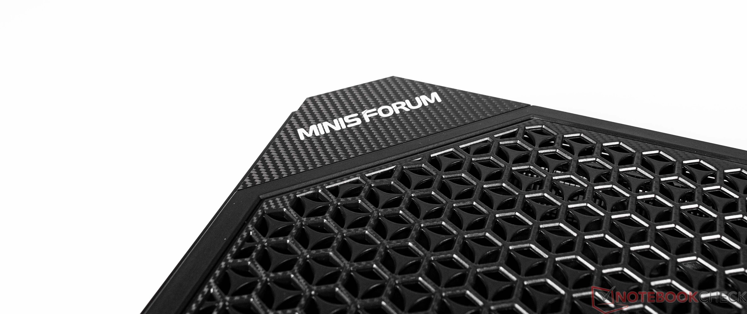 Visualmente, apenas hay diferencias entre el Minisforum Neptune Serie HX90Gy la Minisforum Neptune Series HX99G. La carcasa sigue estando construida principalmente de plástico, con algunos pequeños elementos visuales de carbono añadidos. La fabricación de nuestra unidad de prueba es buena, aunque también habríamos apreciado una selección de materiales de mayor calidad. Con elMinisforum Neptune Serie NAD9el fabricante ya demostró que las cosas también se pueden hacer de otra manera. El ordenador incluye un soporte que permite colocarlo verticalmente sobre el escritorio. Pero no tiene por qué utilizarlo, ya que también puede manejar el dispositivo en horizontal sin ningún problema.