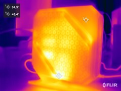 No hay ningún problema con las temperaturas de la carcasa del Minisforum Neptune Series HX99G. Con un máximo de 77.5 °C, el AMD Ryzen 9 6900HXtampoco se calienta especialmente y permanece lejos de su límite térmico. Sin embargo, las cosas parecen ligeramente diferentes con la tarjeta gráfica dedicada, como ya vimos anteriormente en el Minisforum Neptune Sereis HX90G. Aunque a 76 °C (169 °F), el chip en sí no es el problema, vemos una temperatura muy alta en los convertidores de voltaje a 102 °C (216 °F). Los valores separados son mínimamente mejores, si torturamos el dispositivo sólo con FurMark. Entonces sólo vemos 97 °C, mientras que en elHX90G. El fabricante parece haber optimizado ligeramente el disipador. Durante el test de estrés, que simula un escenario extremo, las temperaturas aumentan más que en el funcionamiento diario, debido a la carga extrema de CPU y GPU. No observamos ninguna ralentización del rendimiento debido a temperaturas demasiado altas en nuestra unidad de pruebas.