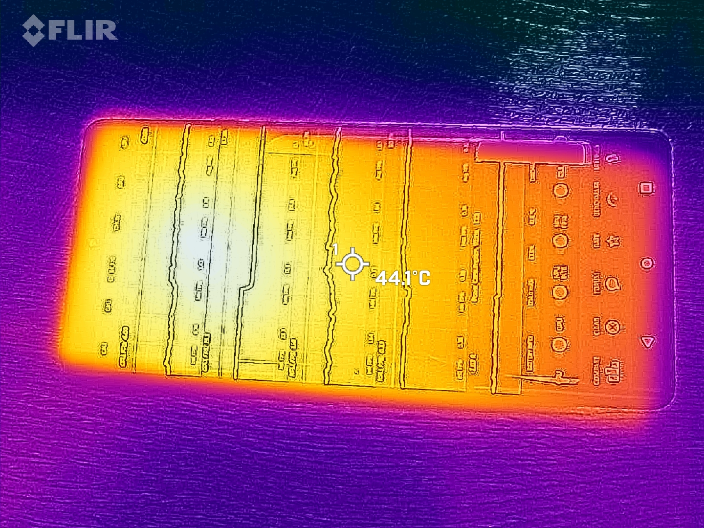 En vista de su alto consumo de energía, el Motorola Edge 40 Pro lucha por mantenerse fresco - medimos un máximo de hasta 46.8 °C y eso a temperatura ambiente. El dispositivo también empieza a oler.