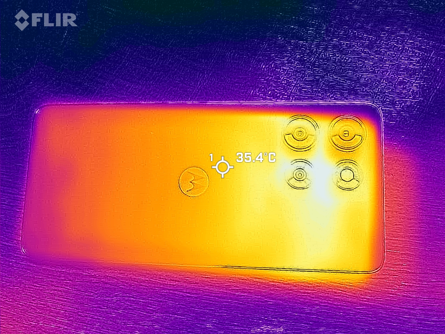 (-) La temperatura máxima en la parte superior es de 48.6 °C / 119 F, frente a la media de 35.2 °C / 95 F, que oscila entre 21.9 y 247 °C para la clase Smartphone.