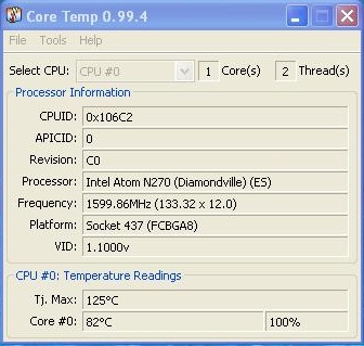 La temperatura de la CPU es todo menos poco clara, ya que llegará al nivel crítico con un máximo de 82 grados Celsius bajo carga total. Desafortunadamente la temperatura de la unidad gráfica no pudo ser medida; el disco duro tuvo una temperatura constante de unos 40 grados Celsius.