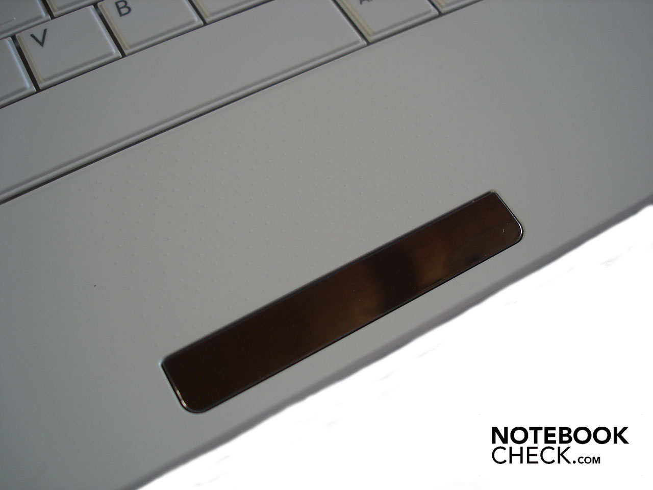 Es tambien dificil encontrar el punto de scroll horizontal y vertical debido al inexistente bisel. Por tanto solo hay que anotar que en esta carcasa, el diseño desgraciadamente vence sobre la usabilidad. Las teclas del ratón éstán situadas bajo el touchpad como una barra plateada solida y tienen un buen punto de presión.