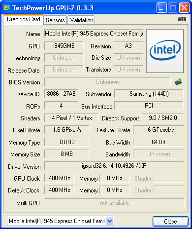 Los resultados de la prueba se presentaron acordes a la poco espectacular configuración con 241 puntos en el 3D Mark'05, 274 puntos en el Shading Cinebench R10 OpenGL y 541 y 828 puntos en el renderizadoCinebench de un solo nucleo y de multiples nucleos.