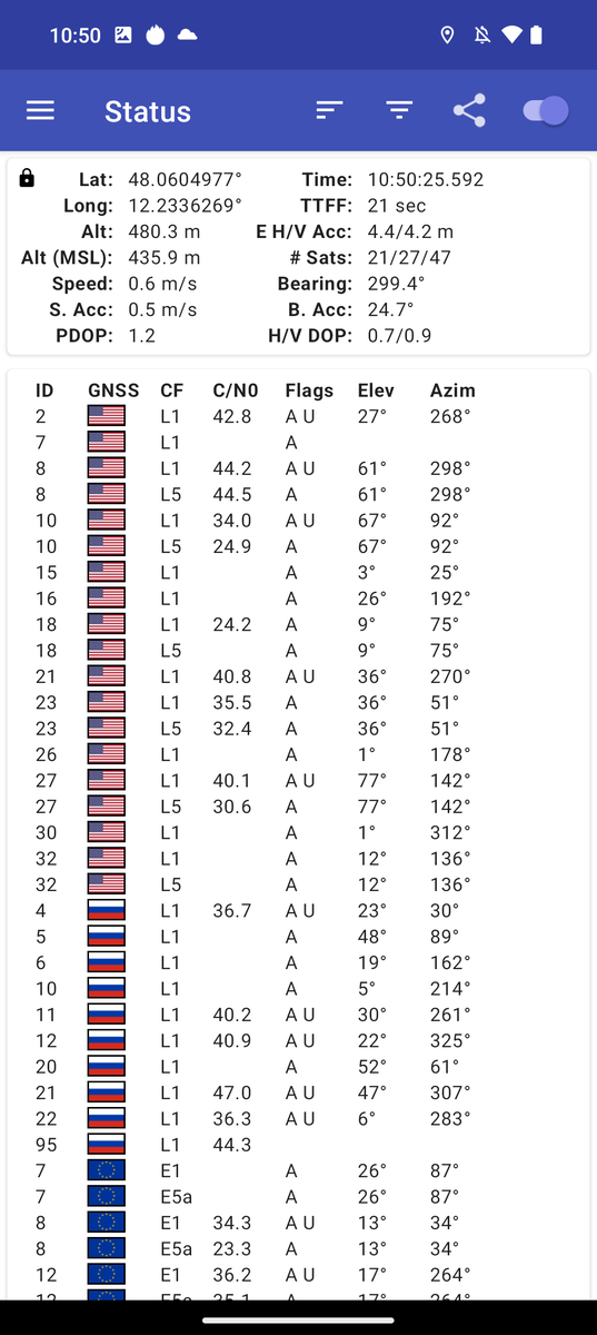En cuanto salga al exterior con el Nothing Phone (2), se le localizará inmediatamente con una precisión de 3 metros. Es compatible con las principales redes de satélites, pero no con el sistema SBAS para una precisión aún mayor. El posicionamiento por satélite también tiene lugar en interiores, pero no es tan preciso.