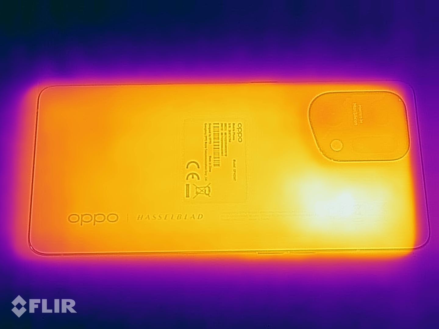 Las superficies de cristal del Oppo Find X5 se calientan hasta un máximo de 37,5 °C en uso, lo que no resulta incómodo cuando se sostiene en la mano. Sin embargo, internamente, el Snapdragon 888 ralentiza su rendimiento en cuanto se calienta demasiado. Y esto ocurre con bastante rapidez, como demuestran las pruebas de estrés Wild Life de 3DMark. GFXBench probablemente habría dado resultados similares, pero por desgracia la aplicación siempre se cierra antes de mostrar los resultados.