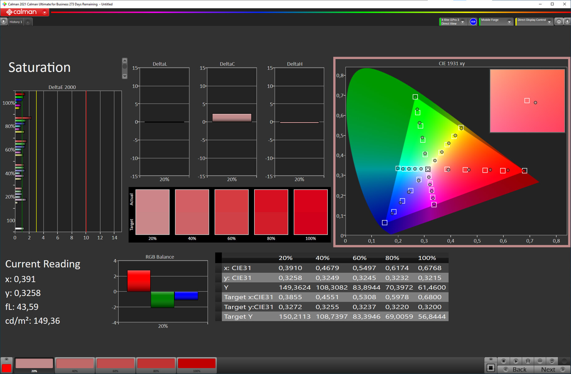 | Colorchecker dE 2000 max. * | 2.5 | 1.52 39% | 2.07 17% | 6.46 -158% | 5.94 -138% | 4.4 -76% |