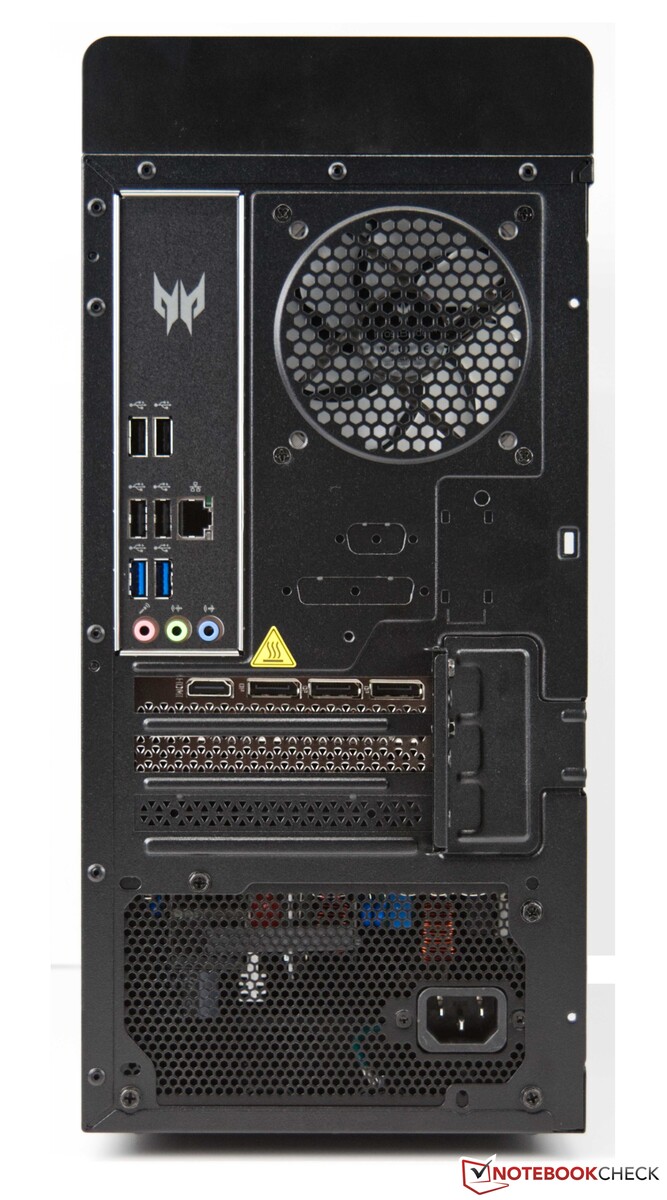 El mantenimiento no es un gran problema para el Acer Predator Orion 3000. El panel lateral está fijado con dos tornillos y se puede quitar fácilmente. Los componentes internos son de fácil acceso. Por ejemplo, el almacenamiento masivo puede ampliarse con un segundo módulo M.2. Alternativamente, se pueden acomodar hasta dos discos duros convencionales de 3,5 pulgadas.