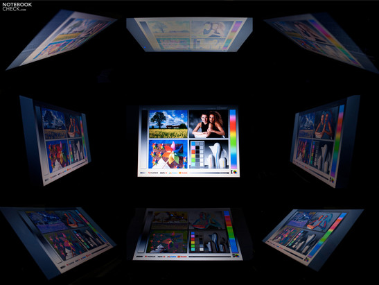 El contraste de 147:1 está por debajo del promedio y es típico de portátiles de oficina y de multimedia sin pantallas especiales. Un valor de contraste más alto hubiese sido útil para la reproducción de videos, ver y editar fotos y jugar juegos. El espacio de colores presentado (comparación ICC) es pobre, como los valores de la pantalla. Este panel no fue creado para la edición profesional de fotos. Por lo tanto, también es verdad que paneles de alta calidad difícilmente son encontrados en este rango de precios del 5830TG, y aun cuando son ofrecidos, sólo pueden ser instalados en un premuim significante.