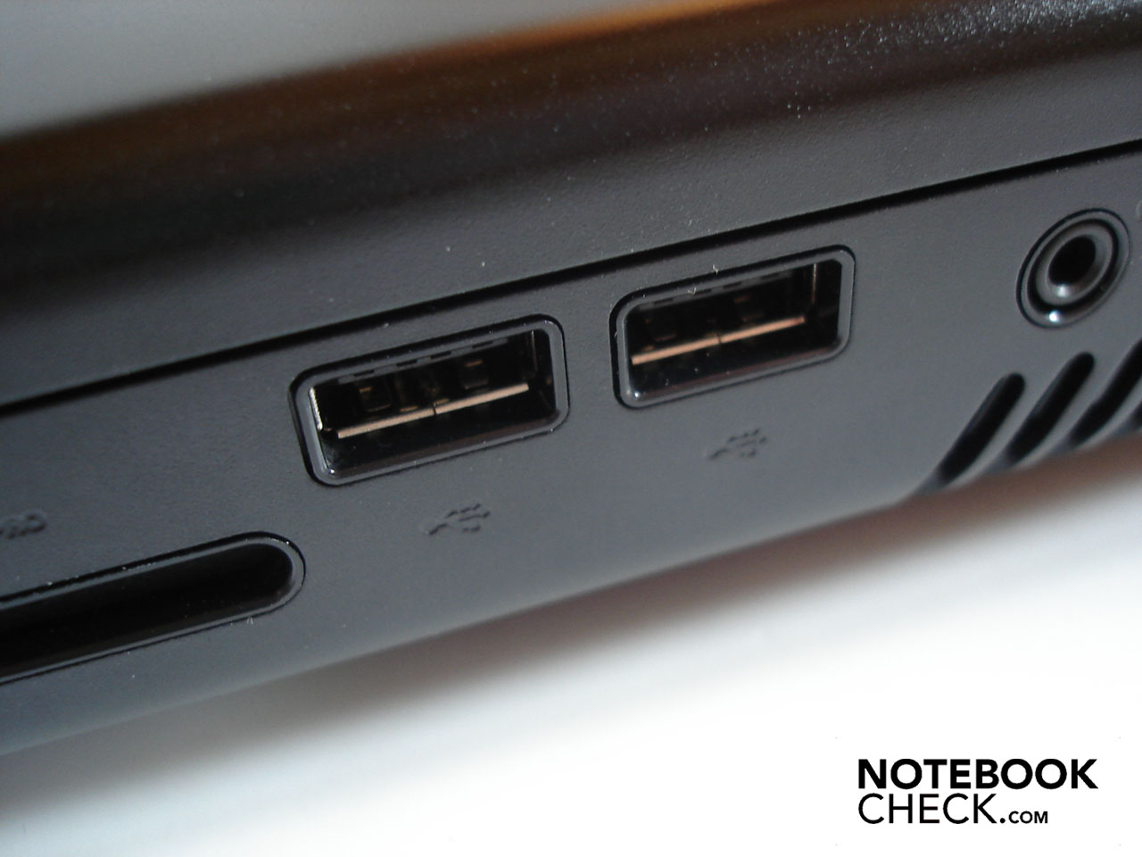 Nos agradó, en gran manera, la distribución de los puertos (excepto por el problema de la tarjeta Expresscard). Sin embargo, hallamos el lado izquierdo desafortunado. Por un lado, zurdos se enfrentaran a un apilado de cables cuando el mouse y demasiados cables sean conectados. Por otro lado, la mayor parte de las conexiones fueron colocadas muy cerca de la parte frontal incluso para nosotros, diestros. La entrada DC posicionada en el lado posterior del chasis, es muy poco practica y primero necesita ser hallada.