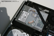 El disco duro de 5.400 rpm zumba silenciosamente sin vibraciones notorias, mientras no está accediendo datos. Pero cuando lo hace, produce un ruido bien audible (si los ventiladores están en silencio), y cuando estaciona las cabezas debido a un choque (detectado automáticamente por un sensor de movimiento) es claramente audible.