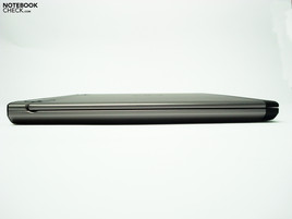 El compartimiento ExpressCard al lado del portátil le permite conectar puertos adicionales, y también UMTS o tarjetas de TV. El lector de tarjetas soporta sólo los formatos más recientes, SD/ SDHC, pero produce la velocidad de lectura usual de 17 MB/s.