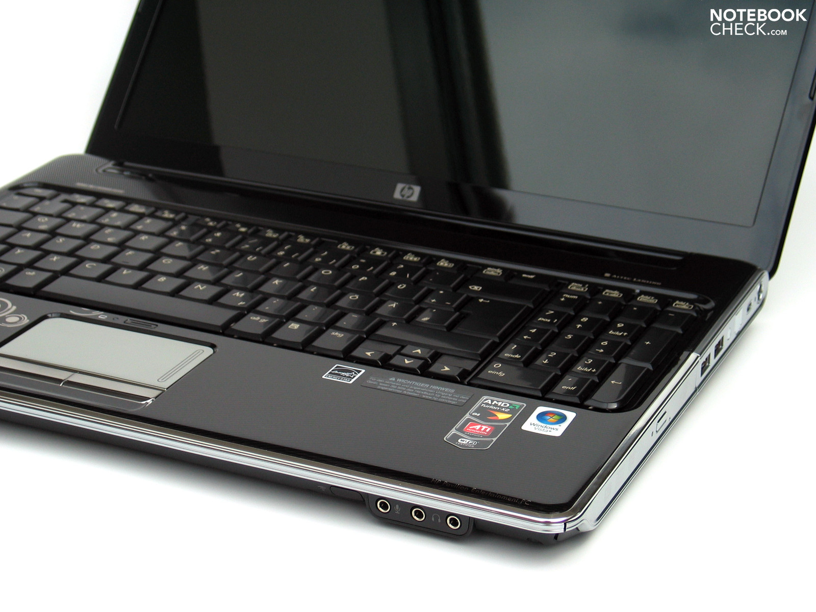 El dv6, como el HDX16, también puede ganar puntos con una configuración de puertos bastante amplia. Sin embargo, nos encontramos con las mismas superficies pegajosas brillosas, en lo que se refiere a los dispositivos de entrada, sólo que en colores diferentes. Aquí, el touch pad espejado tiene que ser visto como el pico de la proliferación artística.