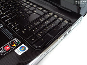 Sin embargo, tenemos que criticar el touch pad. Una superficie pegajosa lisa con uma apariencia espejada es totalmente negativa para un dispositivo de entrada que tiene que ser utilizado con los dedos. No sólo el maniobre es muy incómodo, pero también el aspecto sufre rápidamente de los rastros de grasa en el pad. Positivo: un botón propio para desactivar el touch pad.