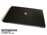 El diseño afilado da una impresión estable. Sin embargo, el usuario establecerá que el chasis se flexiona un poco y que la batería no está fijada de manera adecuada, cuando se ve de cerca. También pudimos torcer la cubierta visiblemente cuando lo levantamos por un borde. Pero eso no opaca la impresión general. Algo que contribuye a la impresión general es el descanso para las muñecas firmemente encajado. No pudimos hundirlo en ninguna parte, ni siquiera con presión fuerte de los dedos. Lo mismo se aplica para la bandeja del chasis. El material gomoso del cual la placa base y los lados están hechos, es resistente a los arañazos y huellas digitales. Llamativo: No hay adhesivos en la placa base. Ni siquiera números de Windows o códigos de fabricación se han perpetuado en esta área. Estas etiquetas más bien fueron colocadas debajo de la batería de litio ion. HP incluso pensó en aquellos que hacen actualizaciones por cuenta propia. Existe una apertura para sustituir el RAM (un módulo incorporado), el disco duro, el módulo WLAN y espacio para una tarjeta UMTS que puede ser incorporada de manera opcional.
