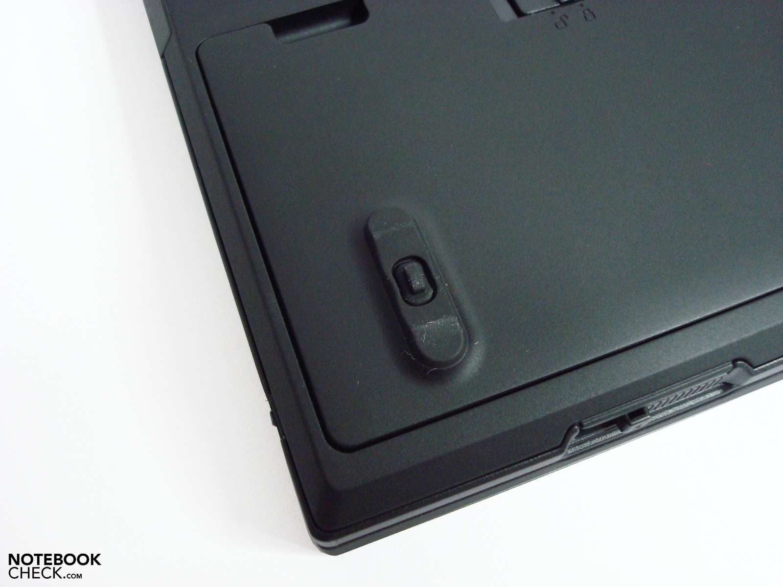 Falta un pie de soporte cuando la batería es retirada y lleva a un tambaleo del lado derecho frontal. Así, la digitación sólo es posible para los más rudos o para un corto uso. La batería integrada de lithium-ion en el lado frontal, se torna ventajosa para abrir la pantalla con una sola mano. Esto agrega el contrapeso necesario en el lado frontal en interacción con las bisagras permitiendo un abrir y cerrar con comodidad sin levantar el chasis.