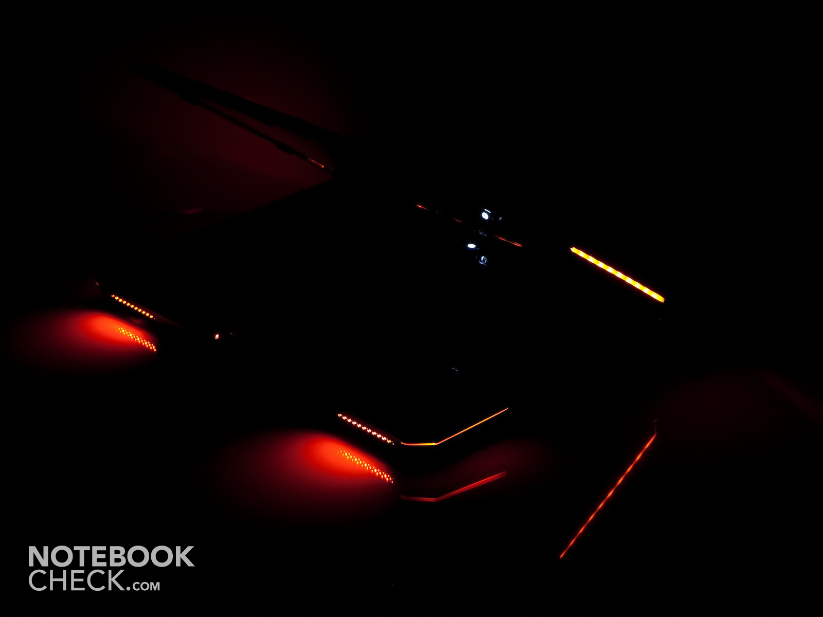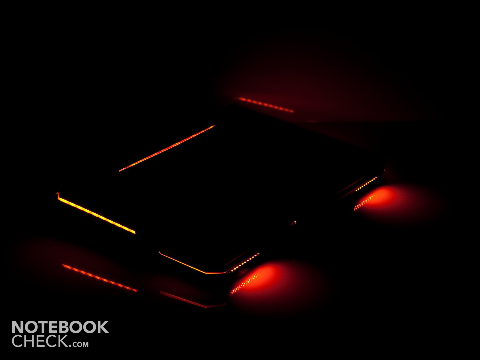 Gracias a la forma del chasis, sus dimensiones de 396 x 269 x 55 mm (ancho x profundidad x altura) el portátil no se ve tan voluminoso como podría parecer. Aun así, el peso de 3,5 Kg es bastante pesado, compitiendo con algunos portátiles de 17-pulgadas. Esto hace que sea difícil llamar al portátil de realmente móvil, pero llevarlo con usted a su siguiente reunión de juegos en red o para una noche de películas en la casa de un amigo no debe ser muy complicado. Sin embargo, viajes más largos pueden no ser muy agradables con el peso del portátil. El peso adicional del adaptador de poder de 630 gramos, es casi imperceptible comparando con el precio del portátil en sí.